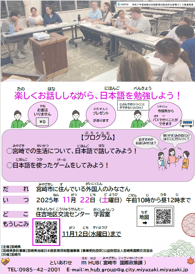 [For people living in Miyazaki City]Shall we study Japanese while having fun talking?